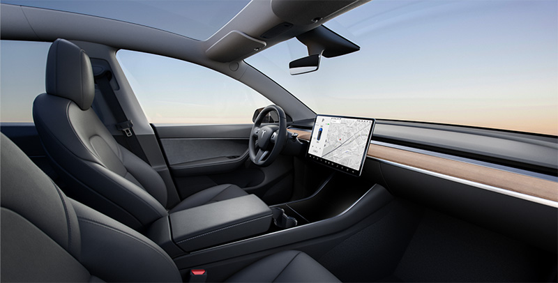 ایلان ماسک می‌گوید که انتظار دارد این خودرو نیز به عنوان امن‌ترین خودروی سایز متوسط SUV شناخته شود. طراحی داخلی تسلا مدل Y شباهت بسیار زیادی به خودروی مدل ۳ دارد. مثل مدل ۳ در تسلا مدل Y هم شاهد نمایشگری ۱۵ اینچی در مرکز داشبورد هستیم که لمسی است و تقریبا تمام اطلاعات مورد نیاز از جمله سرعت لحظه‌ای خودرو، روی این نمایشگر نشان داده می‌شود. همچنین تسلا مدل Y دارای سقف پانارومیک یک پارچه است که از بالای سر سرنشینان جلو، تا بخش پشتی خودرو کشیده شده است. ردیف سوم صندلی‌ها که جا برای دو سرنشین اضافه و در مجموع ۷ سرنشین را امکان پذیر می‌کند نیز تا سال ۲۰۲۱ برای این خودرو عرضه نمی‌شود.